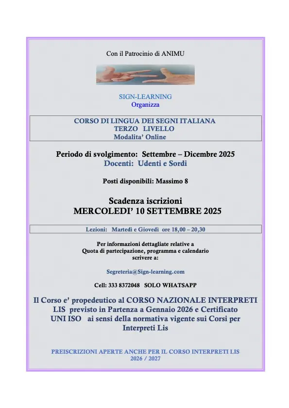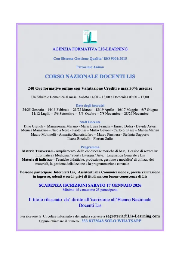 INCONTRI DI PREPARAZIONE AL CORSO INTERPRETI LIS 2026